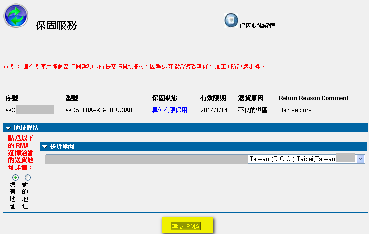 13.此頁面即是RMA相關資訊,請整頁列印下來,